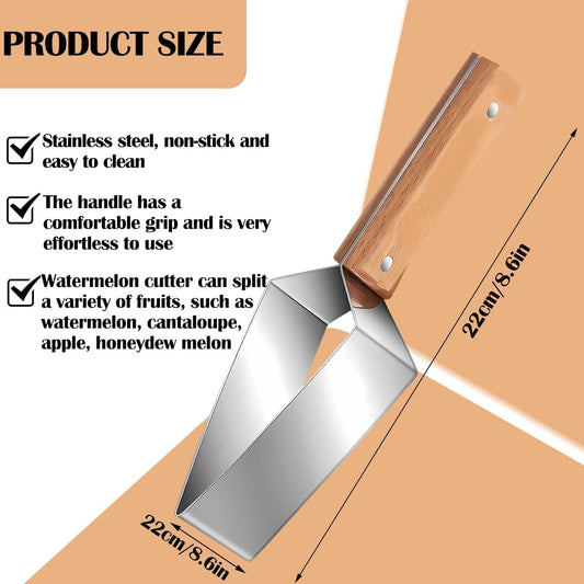Triangulär vattenmelonskiva, rostfritt stål med trähandtag - Melonskärare, fruktskärare för köksredskap