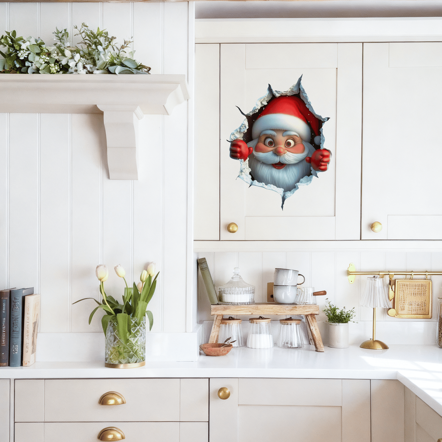 Förvandla vilket rum som helst till ett festligt sagoland med vĂ„r 3D-klistermĂ€rke med jultomten som bryter igenom vĂ€ggen â dĂ€r kreativitet möter julstĂ€mning!
