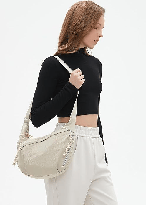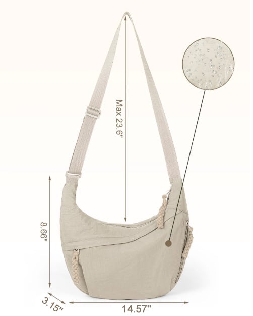 Perfekt storlek för vardagsbruk: Med en bredd pÄ 37 cm, en höjd pÄ 22 cm och en tjocklek pÄ 8 cm erbjuder vÄr halvmÄneformade nylonvÀska den perfekta balansen mellan rymlighet och elegant design för vardagsbruk. Med en justerbar axelrem som kan förlÀngas upp till 120 cm kan du enkelt vÀxla mellan klassisk axelbÀrning och trendig crossbody-stil för ultimat mÄngsidighet och komfort.