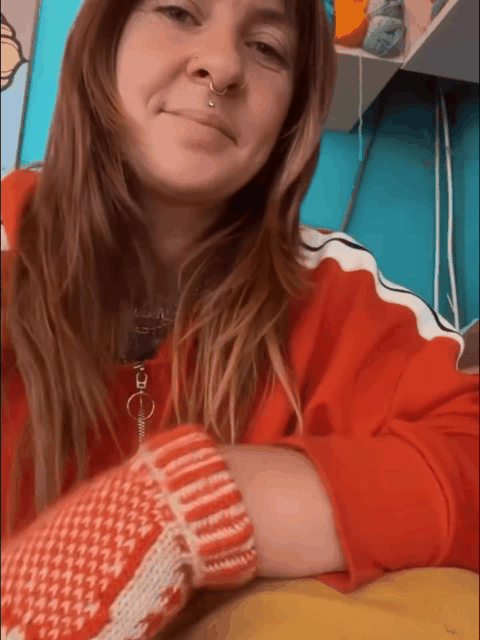 Dessa lysande orange-krĂ€mfĂ€rgade handskar har ett klassiskt nordiskt mönster med en rolig hemlighet. NĂ€r du lyfter handen avslöjar mönstret en stor, pixlig lĂ„ngfinger. Det perfekta sĂ€ttet att sĂ€ga "hej" till iskalla temperaturer â eller till din bĂ€sta vĂ€n!