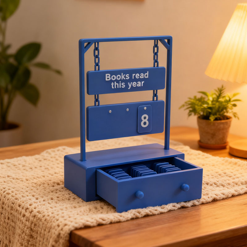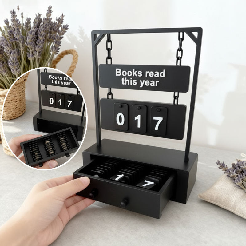 Det hĂ€r Ă€r inte bara en dekoration â det Ă€r din personliga följeslagare pĂ„ din lĂ€sresa. Varje gĂ„ng du lĂ€st ut en bok vĂ€nder du bara pĂ„ rĂ€knaren och lĂ„ter din bokhylla registrera din lilla prestation đđSe siffrorna vĂ€xa dag för dag, som om du vandrar sida vid sida med din egen historia đ±