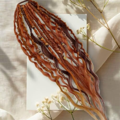 10 enkel- och dubbelsidiga dreadlocks av syntet och ull