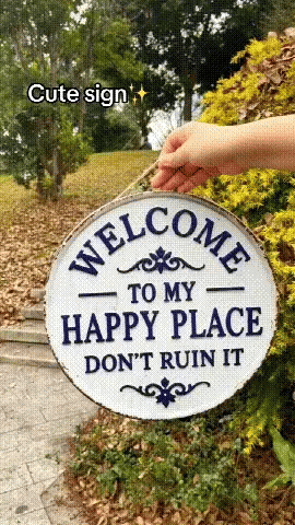 - Design: Rund skylt med citatet ”Välkommen till min lyckliga plats – förstör den inte” 🌿